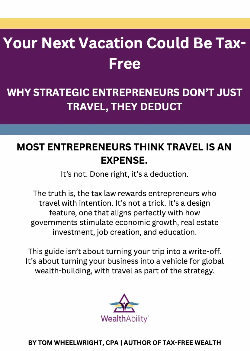 Tom Wheelwright’s results, strategies, and experiences are not typical and are not a guarantee of your financial success. WealthAbility® does not promise or imply any guaranteed outcomes, whether in tax savings, wealth building, or business growth, based on the use of our education, systems, or services. Individual results will vary widely depending on factors including personal effort, financial situation, business model, and market conditions. All content presented on this website, including but not limited to tax strategies, videos, frameworks, and written material, is the intellectual property of WealthAbility®, LLC. Unauthorized use, reproduction, or distribution of any material without express written consent is strictly prohibited.